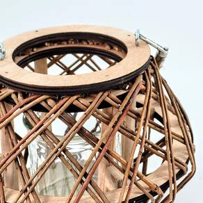 Lanterna Decorativa Lampião Castiçal Madeira Corda Rústico G Castiçal Decorativo de Madeira Vazada com Alça de Corda Inigual Decor Ilumine e decore seu ambiente com o Castiçal Decorativo de Madeira Vazada, um item que combina o charme rústico com um toque de elegância natural. Perfeito para criar uma atmosfera acolhedora e convidativa, destacando a beleza da luz de velas em qualquer espaço. Feito de madeira com acabamento vazado, este castiçal permite que a luz da vela escape suavemente, criando um efeito visual encantador e sombras delicadas. Ele possui uma alça de corda que facilita o transporte ou permite pendurá-lo, adicionando um detalhe rústico e prático à peça. No interior, há um copo de vidro removível, ideal para acomodar velas não inclusas e garantir a segurança, além de facilitar a limpeza e a troca da vela. Com 15 cm de altura ou 34 cm com a alça estendida e 19,5 cm de largura e profundidade, este castiçal tem um tamanho versátil para mesas de centro, prateleiras, varandas ou nichos. Pesando 390g, é leve e fácil de mover, mas com a robustez necessária para durar. É a escolha perfeita pra quem busca um elemento decorativo que remete à natureza e à simplicidade sofisticada, valorizando a iluminação intimista. Por Que Escolher o Castiçal Inigual Decor Design Rústico e Elegante: A combinação de madeira vazada e alça de corda cria um visual charmoso e natural. Ambiente Acolhedor: Ideal para criar uma iluminação suave e um clima intimista com velas. Versatilidade: Pode ser em mesas, pendurado ou como parte de composições decorativas. Praticidade: O copo de vidro removível facilita o uso e a manutenção, garantindo segurança. Material de Qualidade: Madeira resistente e vidro durável garantem longevidade à peça. Especificações do Produto: Altura Aprox.: 15,0 cm Altura Aprox. com alça : 34,0 cm Largura Aprox.: 19,5 cm Profundidade Aprox.: 19,5 cm Peso: 390 g Material: Madeira, Corda e Vidro Conteúdo da Embalagem: 1 Castiçal Decorativo Vela não inclusa Importante: Limpe delicadamente com um pano macio e seco. Evite o uso de produtos abrasivos ou quedas. Ao usar velas, nunca deixe o castiçal sem supervisão e posicione-o em superfícies seguras, longe de materiais inflamáveis. Observação: As imagens são ilustrativas. Os demais itens decorativos exibidos nas fotos não acompanham o produto.