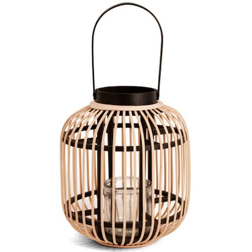 Lanterna de bambu com suporte de vidro preta 40x30 cm