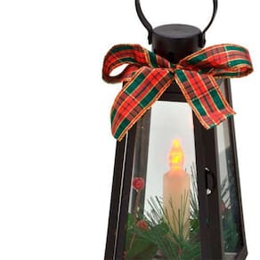 Lanterna Em Metal Natalina Com Luz 10X20 Cm Lanterna em metal natalina com luz 10x20 cm. Observação: As cores dos produtos podem sofrer variações em função das características do monitor e do ambiente durante sua visualização. Alimentação: 03 pilhas AAA não inclusas . Matéria prima: Metal e plástico. Medida aproximada da embalagem: Compr. X Larg. X Alt. : 12x11x21 cm.