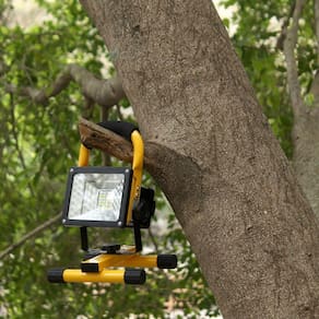 Alimentado com as baterias recarregáveis já inclusas ou ligado na tomada 110V ou 220V. A bateria é cortesia não inclusa no termo de garantia Potência 30W Dois modos de intensidade Alto ou baixo Função strobo vermelho e azul para sinalização de alerta / emergência 360º de rotação máxima e flexibilidade IP65 Capacidade de Iluminação até 25 metros