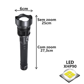 Uma lanterna, resistente e potente que é essencial em Caça, emergências, além disto, pode ser usada em seu trabalho, pesca, trilhas, montanhismo, Camping, escalada, sobrevivência, patrulha noturna, etc.Utilizando tecnologia de ponta, possui sofisticado Cree Led P90, a lâmpada de Led com uma enorme performance 3x mais eficiente que a famosa x900.