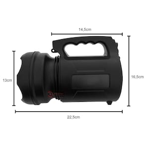 Possui design moderno com ABS forte e resistente a agua, pesando 1,3kg devido a sua robusta bateria e componente eletrônicos de alta qualidade. Tem 3 modos de uso, intensidade de luz menor e o segundo intensidade de luz do led maior e strobo.
