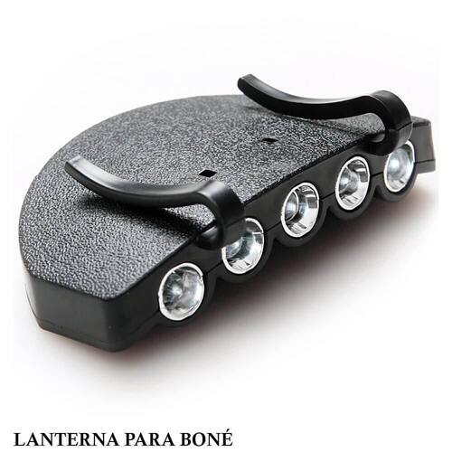 Essa lanterna de boné com 5 faróis de LED é um bom design para ciclismo, corrida, caminhadas (use o modo piscante), acampamento, pesca e a qualquer hora que você precisar de iluminação.Leve, compacto e projetado para suportar condições e uso extremos. Projetada para ficar fixa no boné dando mais praticidade deixando as mãos livres. CARACTERÍSTICAS: Interruptor ON/OFFTipo: Luz de cabeça Cor: Preto; Material: revestimento de plástico, luz LED2 modos: 5 luzes LED, 5 flash LEDFonte de alimentação: 2 pilhas CR2032 (incluídas) Acessório leve, tempo de vida é de cerca de 100.000 horas Tamanho: 8,3 cm x 2,3 cm (aprox.) O pacote inclui: 1 luz de cabeça Marca: Não Informado