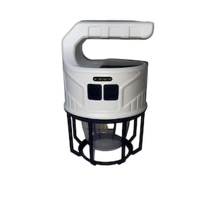 Conta também com medidor de bateria por leds, gancho retrátil para que possa pendurá-la, um botão para acendimento do LED da lanterna e uma para o acendimento do lampião, cúpula de acrílico para proteção de água e poeira, e grade de proteção em casos de queda.