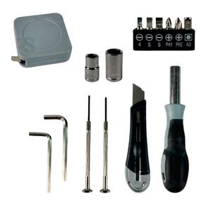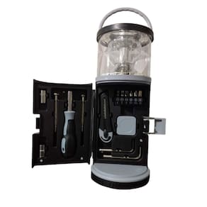 Kit de Ferramentas Com Luminária 15 Peças Eletromex EL-1705 Caixa de ferramentas com 15 peças e luz de LED. - Material de qualidade e durabilidade - Pode ser para uso pessoal ou profissional - Acompanha 2 chaves hexagonais, punho da chave de fenda, 6 bits de chave de fenda, 2 cabeças de soquete, fita métrica, estilete, 2 chaves de fenda de precisão - 2 modos de iluminação - Necessita de 3 pilhas AA não inclusas Tamanho: 25 x 9,5 cm Marca: Não Informado Ean: 7891123055021