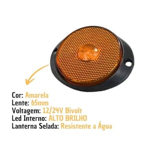 Lanterna lateral led carreta / caminhão / trailer / reboque - com suporte frontal amarela p - 65mm Marca: iva Código: l3014am Bivolt 12/24v Led interno alto brilho Lanterna selada: resistente a água Lente de 65mm Cor: amarela Fixação: frontal Com suporte fixo Tipo de alimentação: fios não é necessário chicote Tipo de luz: led Watts: 10 w Alcance de projeção: 10 m Potência: 10 lm Aplicação: Universal Randon, , librelato, noma, facchini, etc Item incluso: 1 lanterna lateral com suporte 65mm ------------------------ - a ampec autopeças não se responsabiliza pelo mau uso ou instalação indevida do produto, sempre recomendamos que a instalação seja feita por um especializado. - o produto é novo Sim, trabalhamos somente com produtos novos. -tem disponibilidade do produto Temos disponibilidade de todos nossos produtos enquanto durarem os estoques. - imagem ilustrativa utilizada para identificação e demonstração de produto. - as marcas e modelos citadas no anúncio, pertencem aos seus respectivos fabricantes, somente mencionadas como referências para o uso correto do produto, conforme artigo 31 da lei: 8078 de 11.09.1990 Não temos qualquer vínculo com estas empresas.