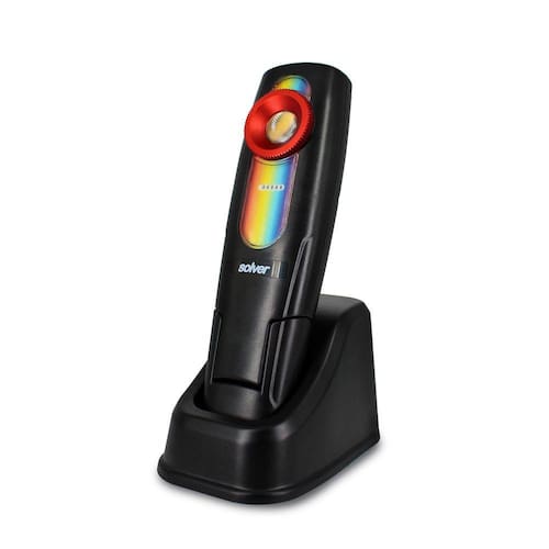 Lanterna de Inspeção 3 cores SLP-303 é robusta, potente e prática. Iluminação: LED COB Potência de 5W - 500 lúmens com 3 Cores: Quente (2700K) - Neutra (4700K) - Fria (6500K). Possui IRC 96, excelente Índice de Reprodução de Cor, próximo à luz do sol (IRC 100), que dá maior fidelidade à cor real da pintura.Índice de Proteção IP65: 6 indica proteção total a poeira e o 5 proteção contra jatos de água, é resistente e eficiente para uso profissional.Fixação com 2 ímãs altamente potentes, gancho retrátil e base com rotação de 180 graus para trabalhar com as mãos livres.Ideal para o acerto de cor, detecção de imperfeições em pintura, estética automotiva, acerto de cores, além de auxiliar em projetos de decoração, iluminação e pintura de ambientes.É essencial para uso profissional, estética automotiva, polimento técnico, pintura automotiva, funilaria, vitrificação, inspeção veicular, colorimetria, engenharia, arquitetura, técnico em projetos de iluminação, etc.A utilização adequada desse equipamento auxilia no acerto mais preciso da cor, evitando o retrabalho e desperdício de material.Alimentação: Bateria interna recarregável de 3,7V 2600mAh Li-on - Bivolt, possui indicador de bateria. Autonomia: Até 2 horas.Informações Técnicas:Potência:5WTipo de Lâmpada:LED COB com IRC super altoFluxo Luminoso:500 lumens (Iluminação total) - 250 lumens (Modo Eco)Modos de Iluminação:2700K - 4700K - 6500K - DesligaTemperatura de Cor:3 Cores: Quente (2700K) - Neutra (4700K) - Fria (6500K)Alimentação:Bateria Interna Recarregável: 3,7V 2600 mAh Li-ionAutonomia:2 horas (Iluminação total)Tempo de Carga4 horasIndicação da Bateria:5 níveisCarregador de Tomada:100V~240V - 50/60Hz (Bivolt Automático)Fixação:2 imãs de alta potência / 1 gancho retrátil giratórioSuporte Articulável:Rotação 180°Indice de Proteção IP:IP65Indice de Proteção IK:IK07IRC: 96Composição:Metal, Plástico ABS e VidroDimensões:190x55x27mmPeso:237gGarantia:6 (seis) mesesAcessórios Inclusos:Base CarregadoraCabo USB