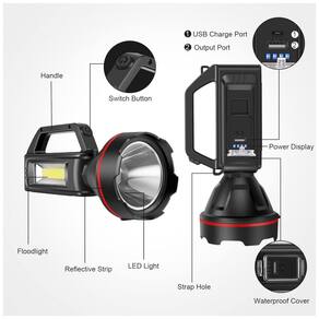 Bateria de grande capacidade O holofote portátil está equipado com uma bateria de grande capacidade atualizada, mais durável do que um item similar. O carregamento por 2 horas suporta 8 16 horas de trabalho. 4 modos diferentes O holofote de alto lúmen possui quatro modos de luz alto, baixo, estroboscópio e holofote. Forneça iluminação de longa distância, a distância de radiação pode exceder 500 metros, 1640 pés. Saída USB e exibição de energia A lanterna recarregável possui uma porta de saída e exibição de energia. Potência restante em um piscar de olhos. Estojo estanque no exterior para uma utilização normal com mau tempo. Fácil de transportar Use com a alça de ombro, você pode carregar o holofote da maneira que quiser. Leve e confortável, liberte suas mãos. Ótimo para atividades ao ar livre Marca: Não Informado