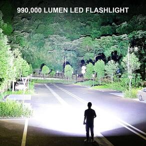 - ?Melhor e mais brilhante? Segure o corpo longo e largo da lanterna em sua mão e experimente o conforto de segurá-lo. A lanterna mais brilhante pode gerar uma saída ultra-alta de até 990.000 lúmens, varre a luz brilhante ao longo de cerca de dois campos de futebol e atinge quase 1093 jardas/999 metros.