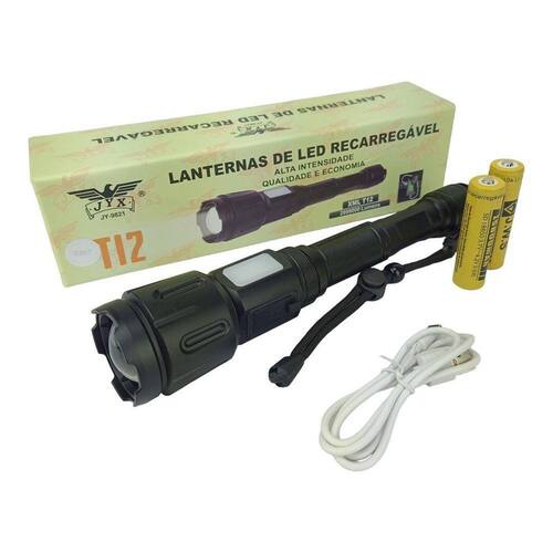 -modelo 2021 com led t12 -modelo utiliza 2 bateria 18650 -luz extremamente branca e forte -potência 2.999.000 lumens nominal -peso: 444 gr com baterias -extrema qualidade -resistente água, com anéis de vedação não mergulhar -resistência ao desgaste -visibilidade 800 metros -90% mais econômica que a lâmpada incandescente comum, a vida da lâmpada de até 100 mil horas. -tamanho 26 x 5 -zoom 1 x 2000 -3 modos de operação luz baixa, alta, strobo pisca função cob luz branca luz vermelha 3 modo -tempo para carregar a bateria na primeira carga entre 8 a 12 horas recomendamos 12 horas - função power bank