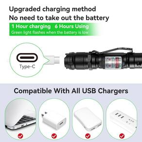 - [Boa qualidade e longa distância] Esta lanterna é feita de liga de alumínio, muito forte e durável, de boa qualidade, e tem um design antiderrapante, alcance de longa distância. [004] (1)