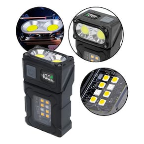 Compacta, versátil e potente, a lanterna multifuncional é ideal para quem busca eficiência e praticidade no dia a dia ou em situações de emergência. Com design flip ajustável, presilha para fixação, ímã para aderência em superfícies metálicas e visor digital, ela proporciona iluminação de alta potência com até 2 LEDs COB. Funciona também como power bank, sendo recarregável via cabo Type-C. Construída com material ABS de alta resistência, possui resistência a quedas de até 1,3 metros e proteção contra respingos (IP45). Uma solução completa para uso em acampamentos, reparos, trilhas e muito mais.