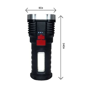 - Alcance de até 300m - Bateria de Lítio - Carregamento USB - 300 lúmens - Autonomia de 2 horas - Dimensões 60 x 60 x 150 mm - Peso 160g