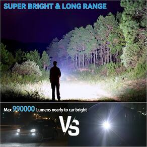 - ?Lanterna de 990000 lúmens?Nossas lanternas de alto lúmen são 30 vezes mais brilhantes do que uma lanterna de LED normal e podem iluminar sem esforço uma área de 200 metros quadrados, com uma distância máxima de iluminação de até 1 m. Com uma saída de lúmen surpreendentemente alta, oferece mais de 990.000 lúmens, esta lanterna perfura sem esforço es through darkness, iluminando os cantos mais escuros e lançando um feixe de luz brilhante e de longo alcance