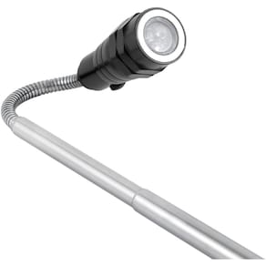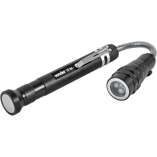 Indicada para iluminação em geral. Possui cabeça flexível com anel magnético para coletar pequenas peças metálicas e corpo telescópico para iluminação em locais de difícil acesso.