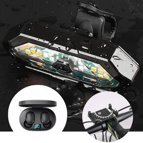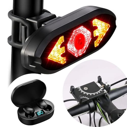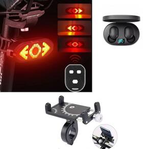 Lanterna Traseira Bike Com Seta E Controle Remoto + FONE DE OUVIDO + Suporte De Alumínio Universal Para Celular Bike E Moto