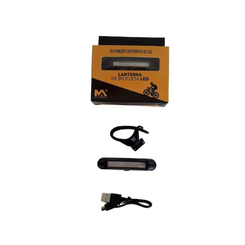 Contem: 01 laterna de bicicleta led - 01 cabo de carregamento usb Tamanho aproximado: 3 x 8 x 10 a x l x c Peso aproximado: 40g Marca:max midia Marca: Maxbras