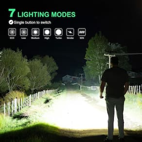 - Resistente a impactos e à prova d'água: a lanterna é feita de liga de alumínio de grau aeroespacial anodizado duro para maior durabilidade, caso você encontre chuvas durante caminhadas, acampamento, vela ou caça, não se preocupe - é à prova d'água IP55!