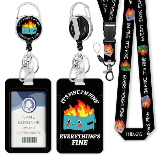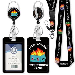 ?Novelty Badge Reel?Esta linda bobina azul de crachá de lixeira foi projetada com artes engraçadas: I'm Fine It`s Fine Everything is Fine. O lindo e interessante carretel de crachá sempre trará mais felicidade e diversão à sua vida. Você receberá muitos comentários sobre isso.