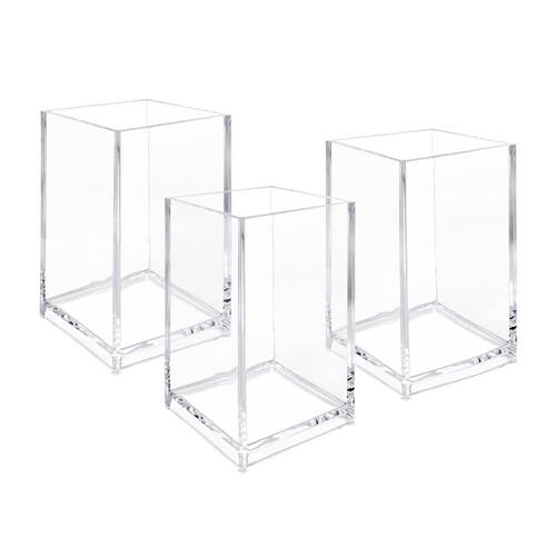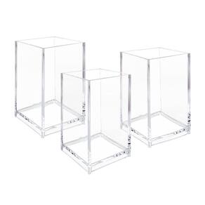 Organizador de pincéis de maquiagem transparente, armazenamento de pincéis de acrílico para cosméticos, estojo de exibição de lápis de sobrancelha - Pacote com 3 copos de acrílico - Feito de material acrílico sólido de qualidade premium - Pode conter pincéis de maquiagem, esmaltes, batons e outros pequenos itens pessoais, mas também é ótimo para armazenar seus artigos de papelaria de mesa, como caneta, lápis, marcador, marcador, régua, borracha, clipe de papel, tesoura, abridores de cartas - Transparente e transparente permite que você veja facilmente o que está dentro. - 6,3 cm x 6,3 cm x 10 cm (C x L x A)