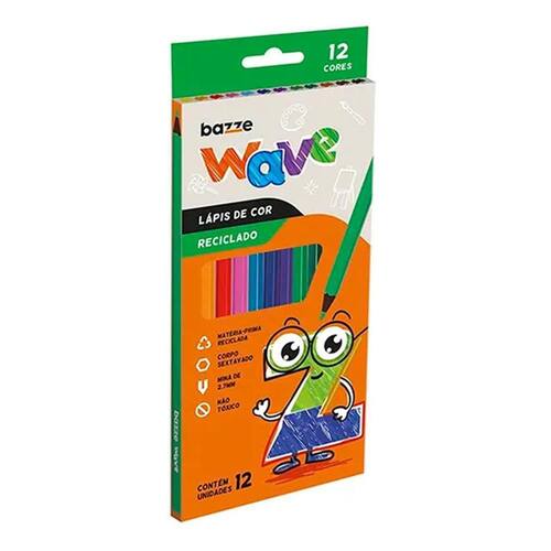 Contém: 01 und - Lápis De Cor 12 Cores Escolar - Wave Bazze.