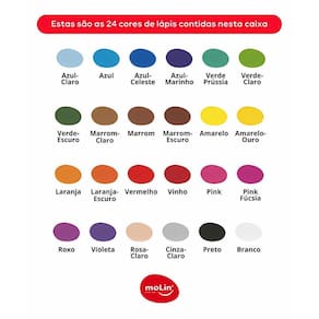 Conjunto Escolar Lapis De Cor 24 Cores + Canetinha Hidrocolor 12 Cores Lapis de Cor 24 Cores - Lápis de cor, para uso escolar e profissional. - Fáceis de apontar, macios e resistentes. - Ótima transferência de cor para o papel. - Cores vivas e brilhantes - Lápis sextavado - Fabricado à base de Madeira Canetinha Hidrocor 12 Cores Tinta super lavável à base de água Ponta fina de 2,2 mm firme, resistente e bloqueada Tampa ventilada anti-asfixiante. Não Tóxica Cores vivas e densas Corpo redondo Grande durabilidade Disponível em 12 cores. Produtos com Certificado INMETRO Marca: Molin : 3 meses Estamos online para quaisquer dúvidas, Agradecemos e aguardamos o seu pedido. Ean: 7796264879287