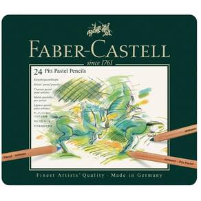 Os lápis pastel Pitt contêm um alto nível de pigmento, mas são livres de cera e óleo, e são perfeitamente adequados para detalhes finos em pastéis. Assim como os lápis pastel Polychromos, eles podem ser facilmente borrados para criar transições de cores finas e complementar perfeitamente os lápis pastel. Apenas uma fixação mínima é necessária, garantindo que os desenhos em pastel mantenham sua vivacidade de cor.