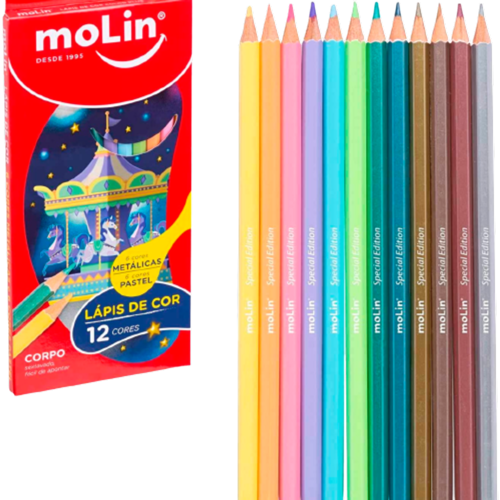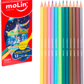 Lápis de cor 6 tons Pastel e 6 cores Metálicas Molin