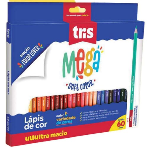 Lapis de cor 60 Cores Mega Soft Color - Tris Edição Color Lover Design Exclusivo 60 cores Cores Clássicas e vibrantes Corpo Triangular + conforto na escrita Lápis de madeira macia: fácil de apontar Mina especial extra macia Ean: 7897476614977
