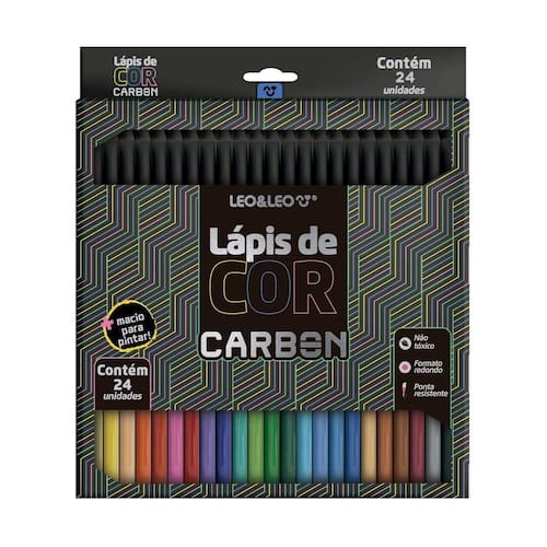 Os lápis de cor carbon line são mais macios para pintar e possuem alta pigmentação, corpo de madeira preta com dip colorido, conferindo um visual moderno. Com apenas madeira, mina de cera e pigmentos em sua composição, são atóxicos. Disponível no formato redondo. Cada caixa individual inclui 24 cores diferentes, com os lápis de dimensões de 0,7 cm de comprimento, 0,7 cm de largura e 17,5 cm de altura e peso de 75g. - contém 24 cores. - formato redondo. - composição: madeira, mina de cera e pigmentos -inmetro: 006130/2020 -imagens meramente ilustrativas atenção: a cor do produto pode variar de acordo com o monitor atenção: o fabricante pode alterar embalagem ou a cor de alguma parte do produto sem aviso prévio.