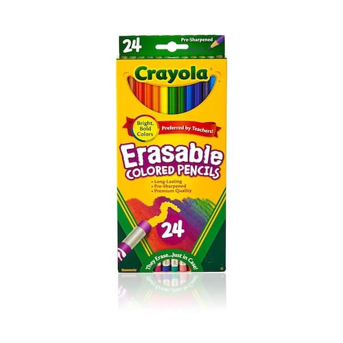 Crayola Lápis de cor apagáveis (24 quilates), lápis de colorir infantis para livros de colorir, artes e artesanato, enfeites de meia para crianças, acima de 6 anos - CRAYOLA Lápis de cor apagáveis: inclui 24 lápis de cor Crayola apagáveis em uma caixa que pode ser fechada novamente. - Cores vibrantes: explore uma paleta de 24 cores ricas e vibrantes que dão vida à arte. - Apaga facilmente: crie obras de arte sem se preocupar usando lápis apagáveis que desfazem erros sem esforço. - Pré-afiada e pronta para usar: entre em empreendimentos criativos com lápis de cor que são pré-afiados e prontos para usar direto da caixa. - Suave e precisa: cada lápis desliza suavemente no papel, permitindo uma coloração detalhada e precisa. - OBRIGATÓRIO DE VOLTA À ESCOLA: estoque este item essencial para qualquer lista de materiais de volta às aulas. Elas são perfeitas para anotações, projetos de arte e abastecimento de salas de aula. - Presente para crianças: estes lápis são seguros, não tóxicos e são uma ótima ideia de presente de aniversário, feriado ou volta às aulas para crianças a partir de 6 anos.