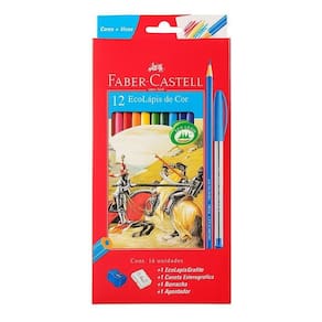 O Lápis de Cor Ecolápis 120112+2AR 12 Cores da Faber Castell é a escolha perfeita para quem busca qualidade, praticidade e consciência ambiental em cada traço. O kit é composto por 12 lápis de cor com cores vivas e intensas, 1 borracha, 1 apontador, 1 lápis de escrever e 1 caneta, não perca mais tempo para deixar a rotina escolar prática, aproveite!