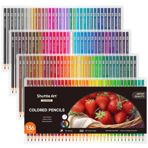 - 136 cores vibrantes exclusivas: o conjunto de lápis de cor Shuttle Art 136 contém 136 cores vibrantes exclusivas, incluindo 12 cores metálicas, perfeito para crianças, adultos, artistas e amantes de cores para colorir livros, desenhos, esboços e outras criações de arte.