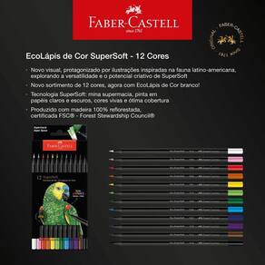 Lápis de Cor Supersoft 12 Cores – Faber-Castell (Novo Estojo) O Lápis de Cor Supersoft Faber-Castell é ideal para quem busca cores intensas e máxima maciez ao colorir. Sua mina supersoft garante traços extremamente suaves, com excelente cobertura e fácil mistura das cores. Este conjunto vem com novo estojo, prático e resistente, perfeito para organizar e transportar os lápis com segurança. Indicado tanto para uso escolar quanto para atividades artísticas e criativas. ? 12 cores vibrantes e intensas? Mina Supersoft – traço ultra macio? Ótima cobertura e mistura de cores? Novo estojo prático e resistente Ean: 7891360698456