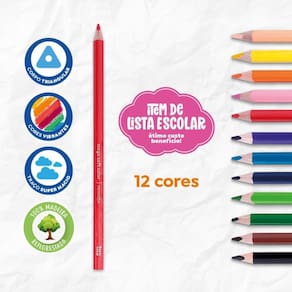 Cores vibrantes Lápis de madeira, de traço super macio, excelente cobertura e corpo triangular. 12 cores Embalagem com 06 estojos. Marca: Não Informado