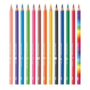 Descubra o lápis de madeira com traço super macio e excelente cobertura. Com corpo triangular ergonômico e 12 cores + um lápis Rainbow, você tem muitas cores em um só lugar