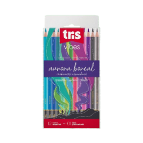 Lápis de cor Tris Vibes Aurora Boreal paleta especial 12 cores + lápis grafite 6B