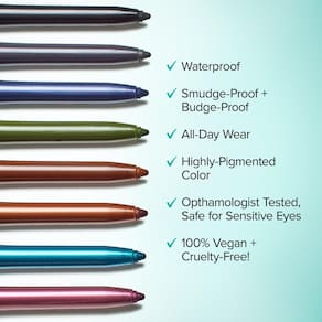 - FÓRMULA CONDICIONADORA: Infundido com ingredientes que amam a pele, como óleo de jojoba, manteiga de karité, ácido hialurônico e ceramidas, esse delineador ajuda a hidratar e condicionar pálpebras e cílios. A fórmula verificada por dermatologistas e oftalmologistas não irrita e é suave para peles sensíveis.