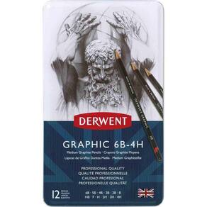 Lápis Graduado Derwent Graphic 6B-4H Com 12 UnidadesUm bom desenho em grafite começa com um bom lápis de grafite com a linha derwent graphic, você tem uma ampla graduação de opções, da maciez do 9b até o 9h (duro).Temos os lápis certos para quem gosta de ilustrações detalhadas finas, repletas de sombreamentos e texturas você não esperaria nada menos da empresa que criou os primeiros lápis de grafite no reino unido: a alta qualidade é notável pois os lápis são feitos a partir dos melhores materiais. O estojo de lata com 12 lápis graduados de média dureza contém as versões 6b, 5b, 4b, 3b, 2b, b, hb, f, h, 2h, 3h e 4h.DetalhesComprimento: 179mmDureza: softEspessura: 6,9mmFácil de apontarGrafite: 2b, 2h, 3b, 3h, 4b, 4h, 5b, 6b, b, f, h e hbLápis de qualidade superiorLinha de desenho profissionalMadeira de alta qualidadeMaior resistência e durabilidadeMina: 2,2mm e 3,5mmModelo: hexagonalProduto importadoQuantidade: 12Formato: (l)118mm x (a)198mm x (p)14mm