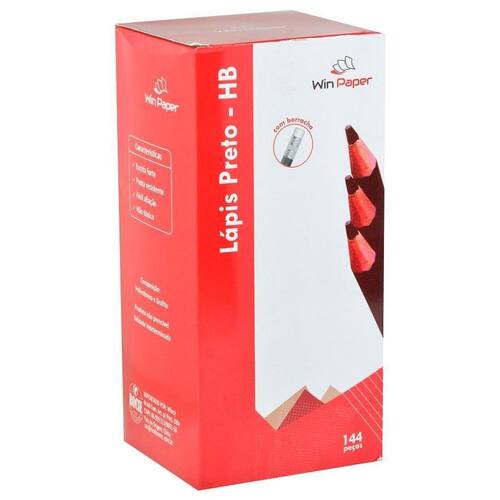 Lápis HB Preto com Borracha 144 Peças Essa linda caixa de lápis pode fazer parte do seu dia a dia escolar ou no escritório, vindo com 144 lápis já aprontados prontos para te ajudar por muito tempo.Excelente produto para escrita e desenho. Características:atóxico linha ecológica Pontas resistentesLápis com formato sextavadoMarca: Win PaperCaixa com 144 unidades Marca: Não Informado