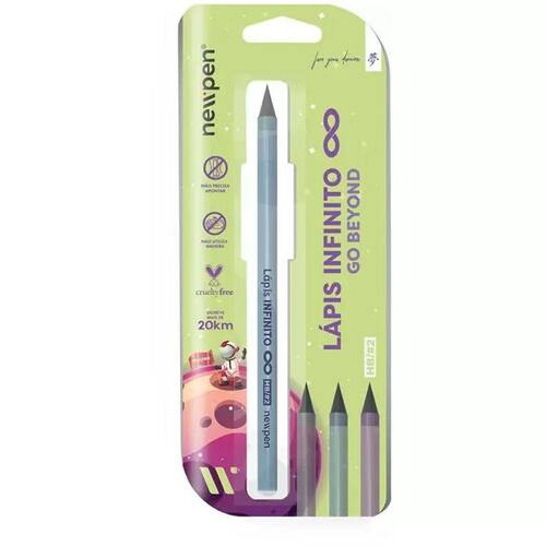 O Lápis Infinito da Newpen equivale a 100 lápis comuns e possui uma tecnologia que consegue comprimir 100 grafites em nano partículas de grafeno, que é um material mais resistente que o grafite natural. O grafeno faz com que ele se desgaste mais lentamente que o grafite comum, o que torna a durabilidade dele igual a 100 lápis comuns.