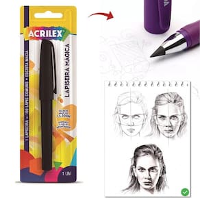 - O lápis Mágico Acrilex possui uma tecnologia que consegue comprimir 100 grafites em nano partículas de grafeno, que é um material mais resistente que o grafite natural.