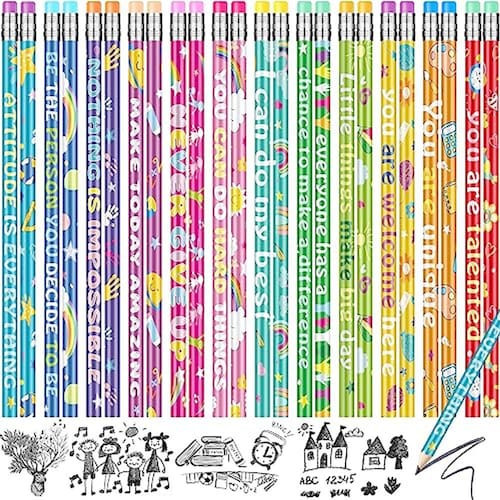 Os lápis motivacionais em massa são presentes ideais para pais e professores inspirarem e capacitarem crianças e estudantes. Eles trazem incentivo e força às mentes jovens. Esses lápis são adequados para várias ocasiões, incluindo o primeiro dia de aula, eventos de volta às aulas, formaturas e festas de aniversário de crianças.