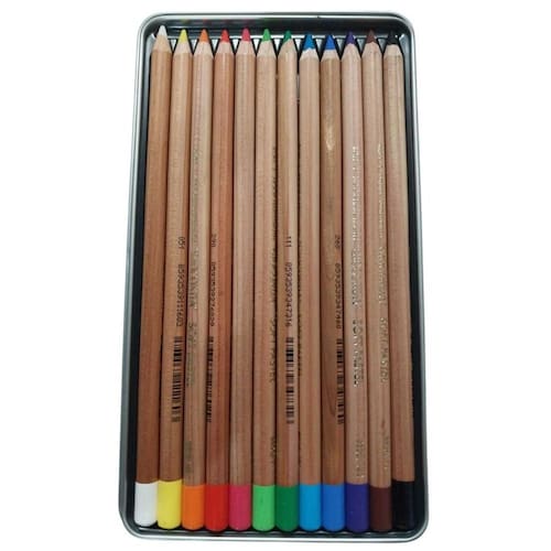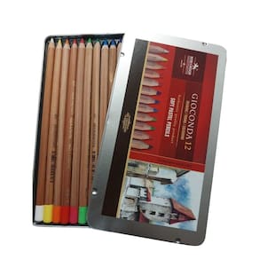 Estojo Lápis Pastel Gioconda 8827 C/ 12 Cores KOH-I-NOOR Para uso artístico em desenho e técnicas mistas em geral. Ideal para desenho de detalhes e traços controlados.Textura aveludada e cores vibrantes com resistência a luz. Os componentes-chave da produção são puríssimas substâncias naturais micro-pulverizadas com base de carbonato de cálcio, que nada mais é do que calcita mineral, ou giz. Misturados com agentes aglomerantes e outros aditivos, uma mistura básica é criada, na qual os pigmentos coloridos são cuidadosamente adicionados. Os pigmentos são adquiridos de renomados fabricantes em todo mundo. Sua qualidade, resistência à luz e taxa de concentração influenciam no resultado final e também na durabilidade dos trabalhos artísticos. A dosagem mínima de aglomerantes garante traços simples e sedosos em papéis ou em outros substratos. A baixa aderência ao substrato permite tonalizações e a criação de misturas de cores. A utilização básica dos lápis pastel consiste na simples distribuição do produto em quantidade suficiente sobre o substrato apropriado, o que permite a subseqüente distribuição das partículas de pó colorido. Essa técnica oferece ilimitadas possibilidades de variação da cobertura e dos tons. Com a quantidade correta de lápis pastel aplicado pode-se realizar sombreamentos mais facilmente. Após a finalização do trabalho, o uso de um fixador é altamente recomendado, para prevenir borrões.