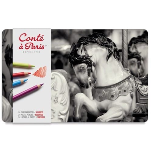 Estojo de lápis pastel seco Conté com 24 cores. O lápis pastel Conté é o preferido entre os artistas, seu diâmetro de 5.5mm proporciona ao artista um excelente resultado. Produzido com pigmentos de altíssima qualidade, o lápis pastel seco Conté é extremamente abrasivo e com uma facilidade enorme de se espalhar pelo papel. Cores do estojos: 004: médium yellow 047: naples yellow 012: Orange 040: red lead 003: vermellion 039: Garnet Red 048: Flesh 049: Light Orange 041: Ciclamen 005: Violet 046: Dark Ultramarine 006: King Blue 029: Light Blue 034: Emerald Green 002: Dark Green 008: Light Green 044: St Michael Green 017: Yellow Ochre 007: Red Brown 001: Bistro 032: Umber 033: Dark Grey 009: Black 013: White Excelência em materiais para desenho Artístico, a Conté também é sinônimo de refinamento e hoje em dia é um dos presentes mais desejados por artistas e aspirantes. 2182 Ean: 3013645000165