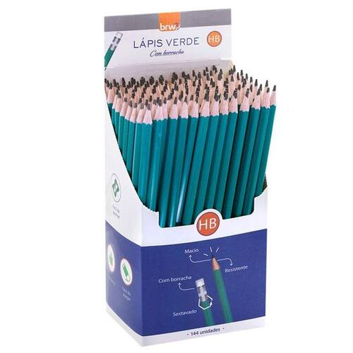 O Lápis Verde HB de Resina Plástica c/ Borracha BRW é um material não tóxico com indicação ideal para realização de desenhos e para escrever em cadernos ou blocos de anotações. Pode ser utilizado tanto em salas de aula e escritórios quanto em ambientes domésticos.