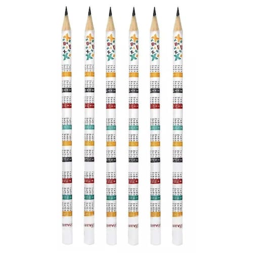 - Graduação HB - Excelente na escrita - Grafite resistente - Tabuada completa estampada no corpo - Corpo redondo - agilidade ao girar pela mão - Composição do Produto: Grafite e madeira.