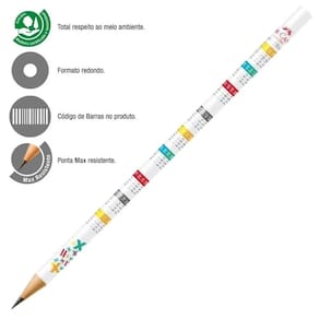 Possui grafite resistente, fácil de apagar e apontar, seu corpo é de madeira, em formato redondo, o que traz praticidade ao girar o lápis na mão, além disso, possui a tabuada completa em seu corpo, perfeito para aquela aula de matemática.