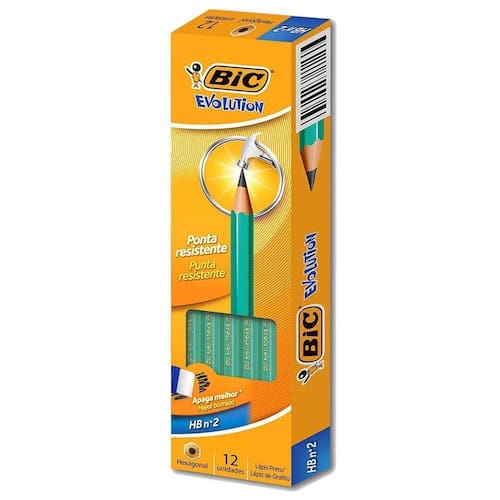 Lápis Preto Nº 02 S/Borracha Bic Evolution Kit C/4 Hexagonal Lápis Preto Nº 02 HB Corpo Verde Sem Borracha Kit C/12 Un Hexagonal Sextavado BIC Evolution, Corpo Verde, Apaga Fácil, Ponta Resistente, 902545 Os Lápis Pretos BIC Evolution são extremamente seguros para crianças pois não lascam e além disso trazem conforto e maciez a sua escrita Perfeito para a escrita diária, seja em casa, na escola, na faculdade ou no trabalhoMais durável com grafite ultra resistente que não quebra com facilidade São fabricados através de um processo único de produção, a partir de resina sintética, estes lápis especiais são fruto de anos de investigação até que este processo único de produção, quadri-extrusão, fosse aperfeiçoado, permitindo a produção numa única operação Um excelente processo de fabricação feito em duas fábricas de tecnologia de ponta, na França e no Brasil DiferenciadoresMaior durabilidade grafite ultra resistente, não quebra com facilidadeSeguro para crianças: não lascaCorpo HexagonalGrafite HB2Fácil de apontarFácil de apagar EspecificaçõesCor Corpo verdeIndicações Pare escreverVolume Blister 4 unidades Informações constantes do selo, conforme Portaria Inmetro Nº 333/2012:Segurança, Compulsório, Registro 003843/2012, SGS0040, INMETRO EmbalagemLápis Preto Nº 02 HB Corpo Verde Sem Borracha Kit C/12 Un Hexagonal Garantia2 Anos