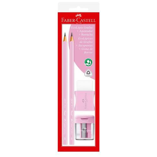 Lápis preto tom pastel Rosa SM/1205PASTELAPR com 2 lápis 1 borracha e 1 apontador - Faber-Castell